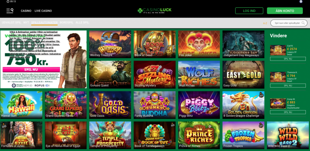 Casinolucks udvalg af spil er omfattende og omfatter alt fra slots til klassiske bordspil til et livligt live casino. Uanset om du er til de nyeste og mest innovative spilleautomater eller klassiske casinospil som poker og blackjack, har Casinoluck noget for enhver smag. Casinoluck har de nyeste spilleautomater fra de mest populære spiludbydere som Pragmatic Play, Play N’ Go og Relax Gaming.